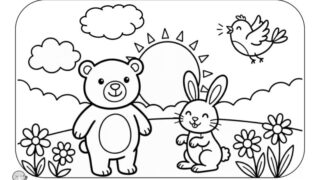 かわいいどうぶつのぬりえです。
