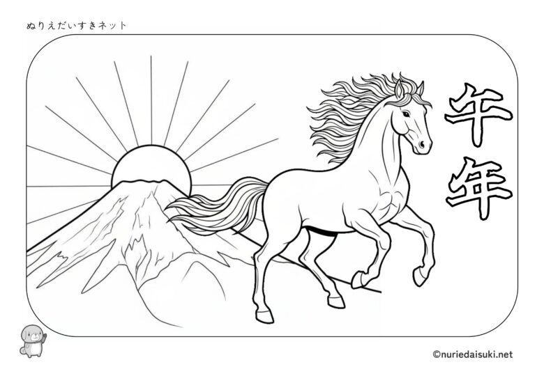 2026年1つ目のぬりえは、新年にぴったりの馬のぬりえです。